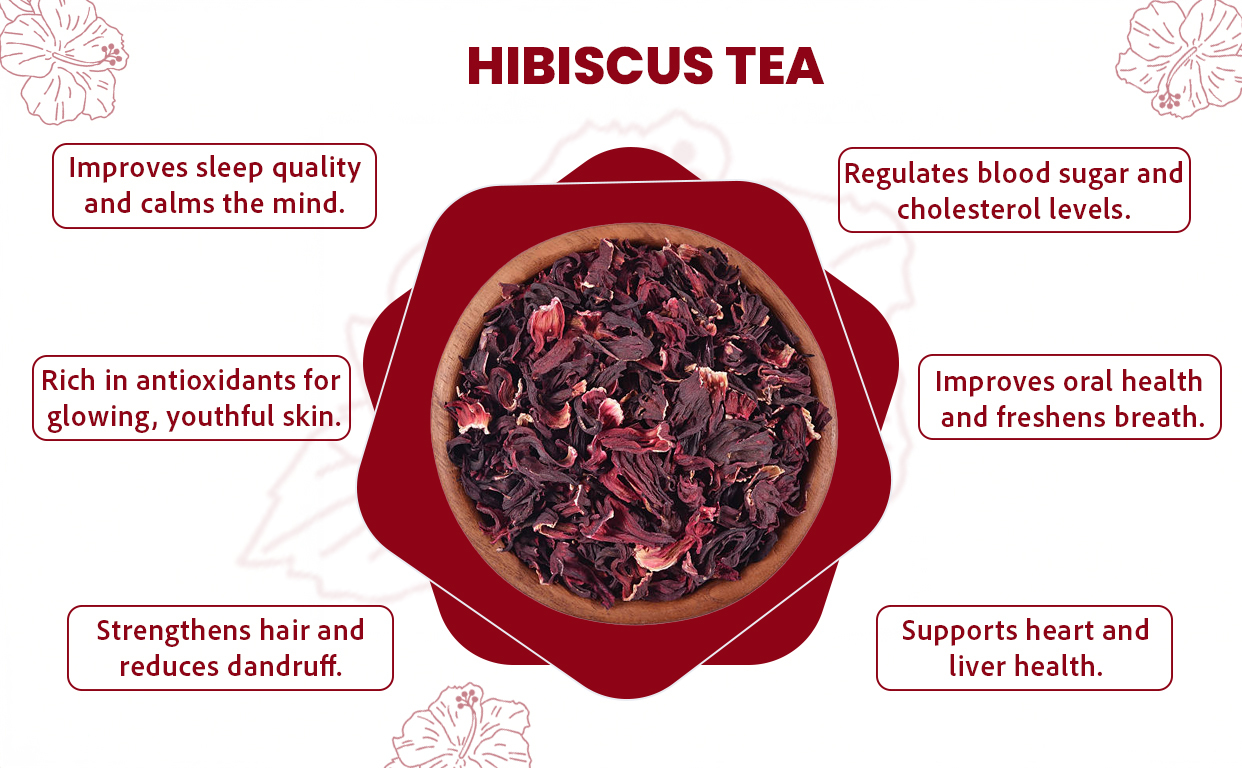 Hibiscus Flower Tea is a vibrant, caffeine-free herbal infusion made from carefully dried hibiscus petals. Known for its deep ruby color and pleasantly tangy taste, this tea is rich in natural antioxidants and traditionally enjoyed for its refreshing and wellness-supporting properties. Free from artificial additives, it is ideal for daily hydration and a natural, plant-based lifestyle.